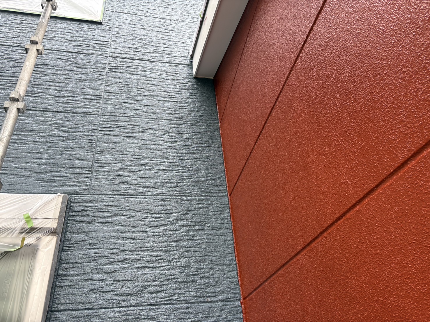 【今日は外壁のツートーン仕上げの片方を中塗りしました!】