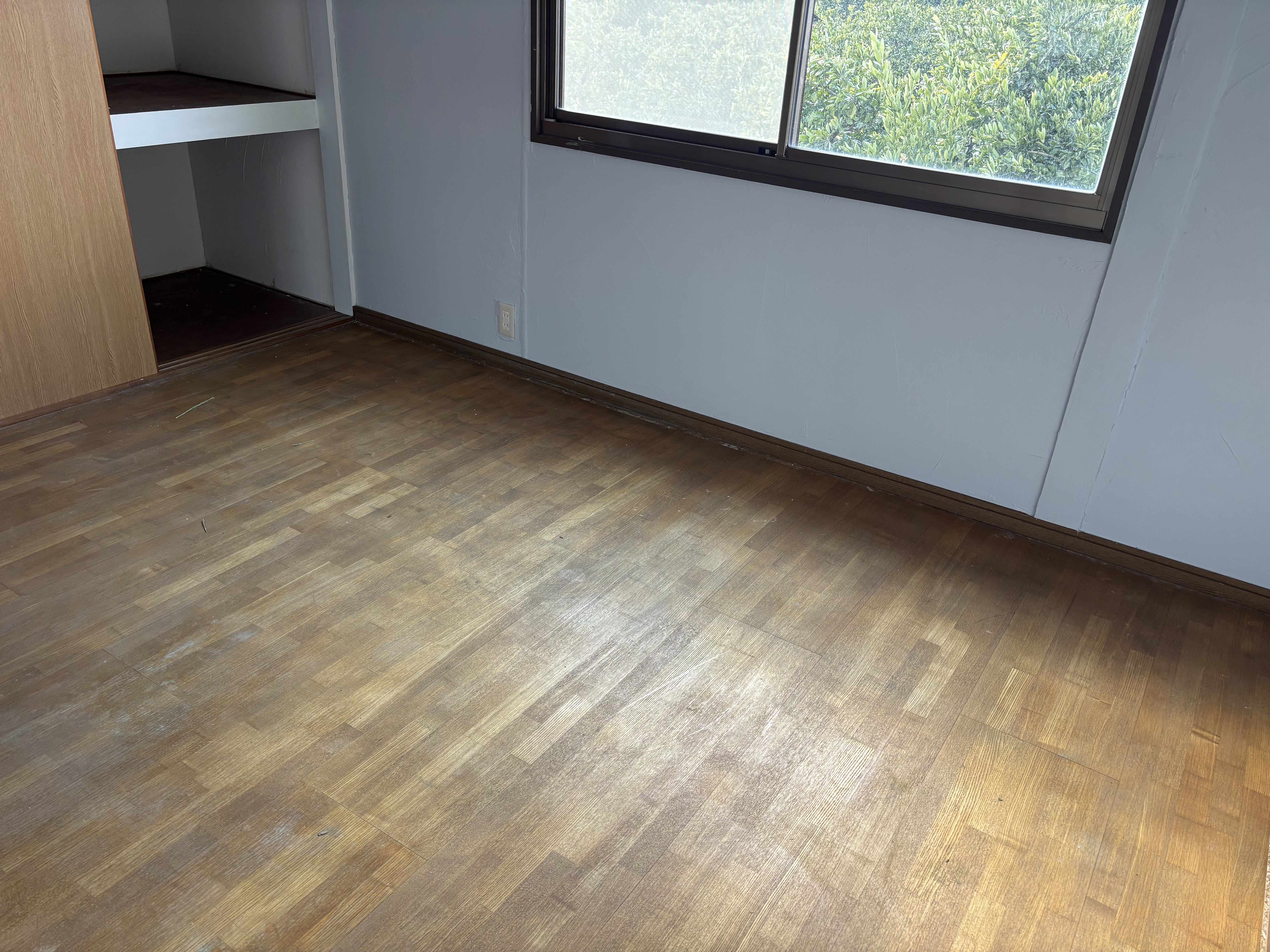 今回は、前回内壁塗装をした部屋の床を上貼り作業してきました!