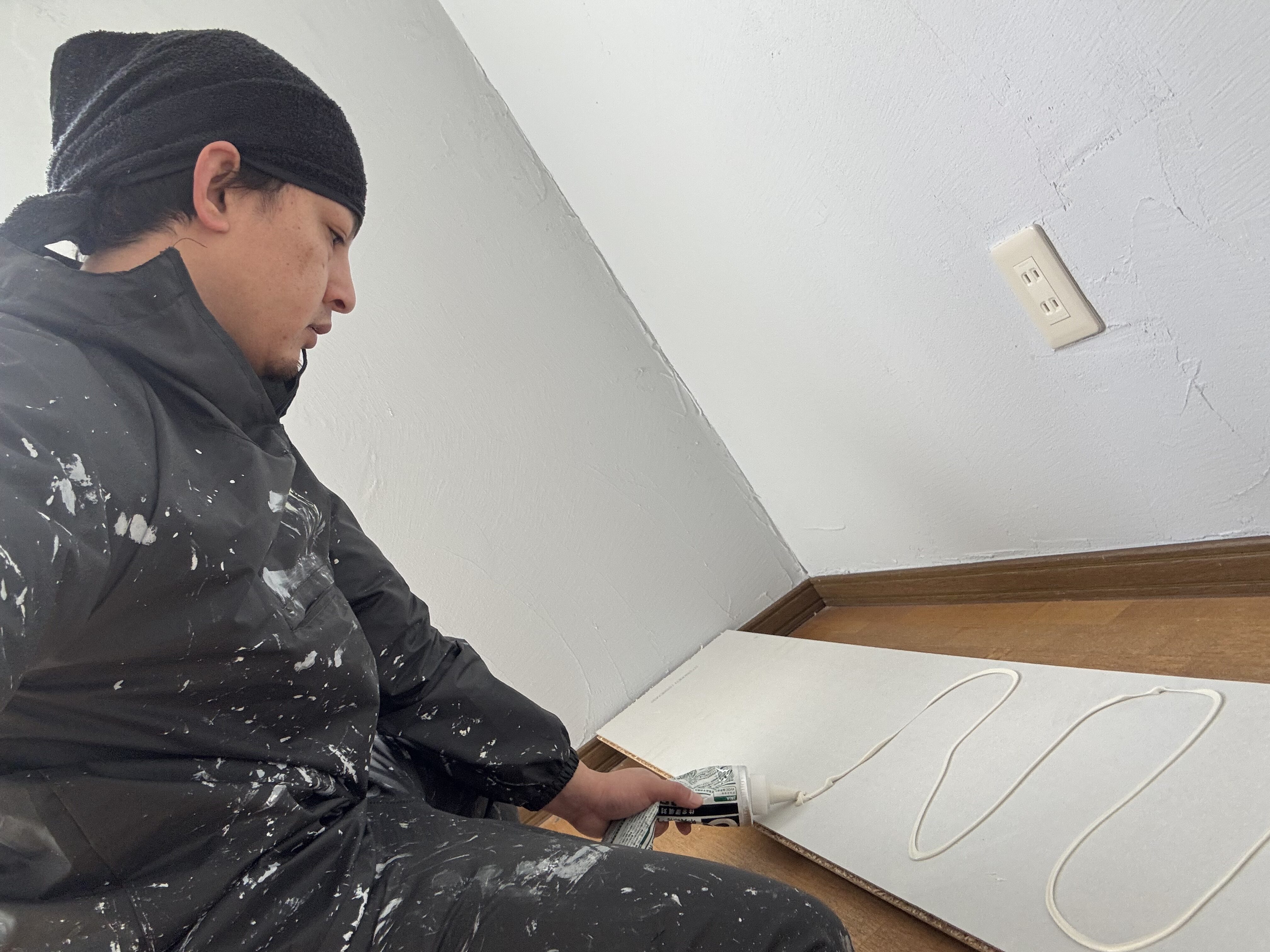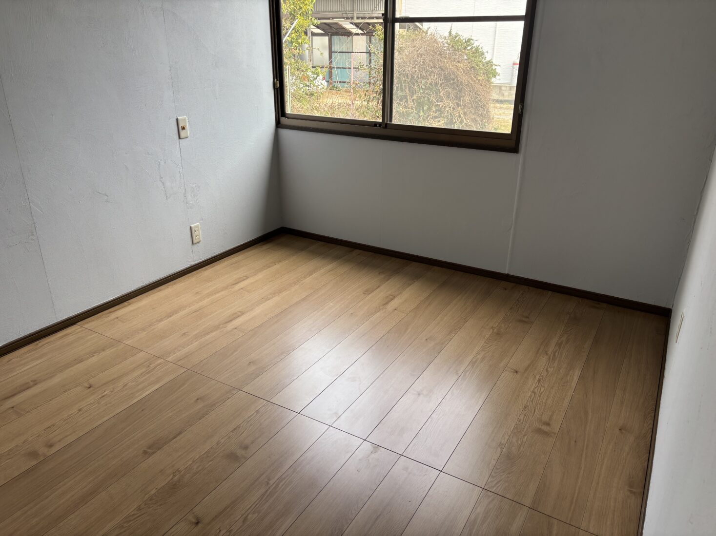 この部屋の内壁の塗装も完了しているので、床を貼っていきます。