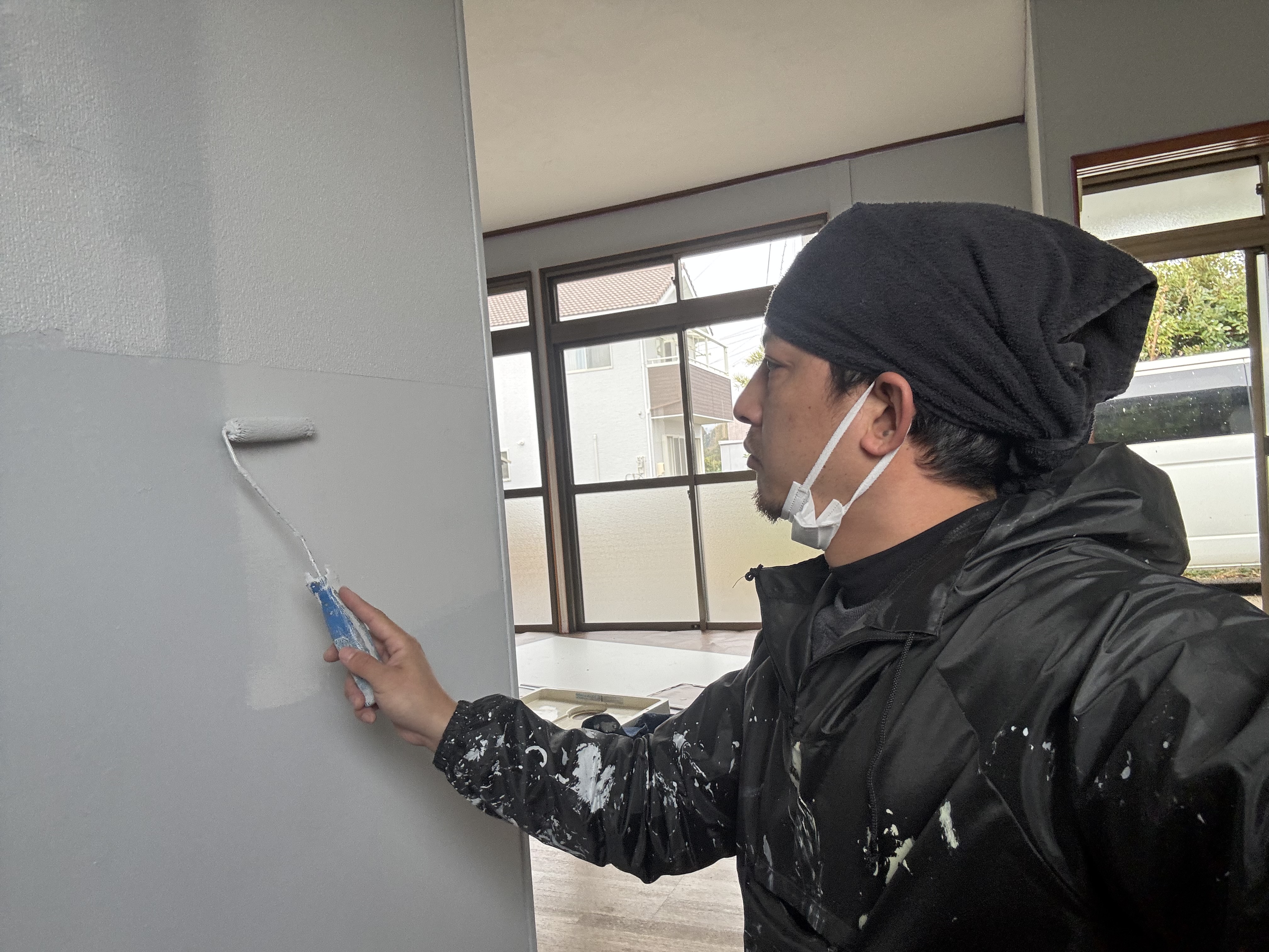 こんにちは、塗り替えまじめ屋、代表親方の原です。今日は内壁塗装作業をしていました。